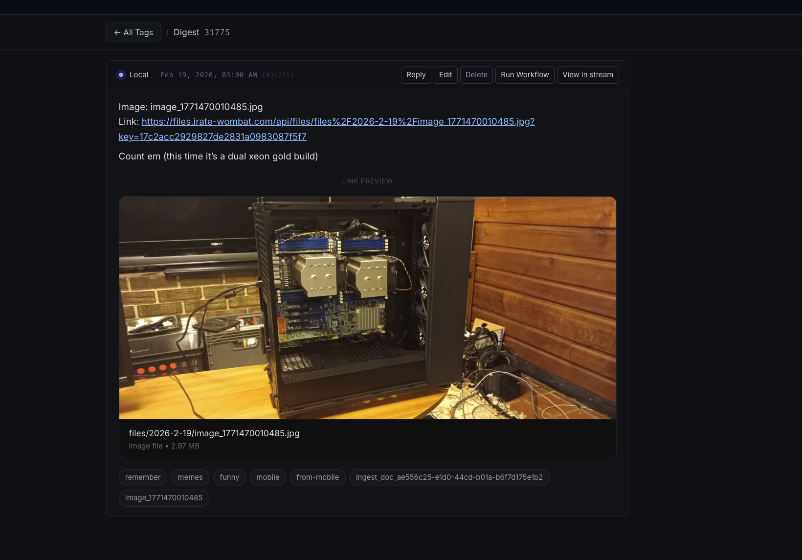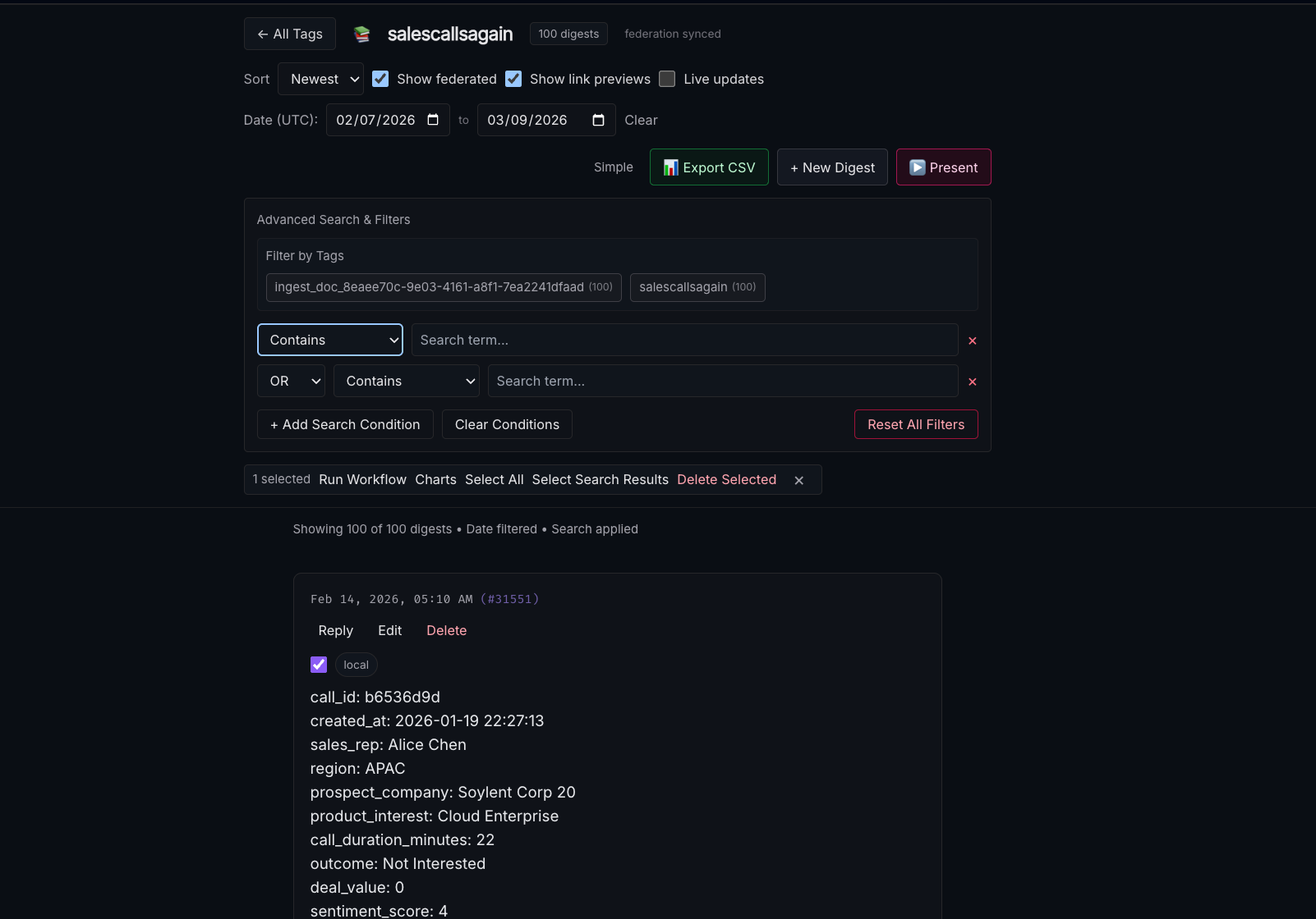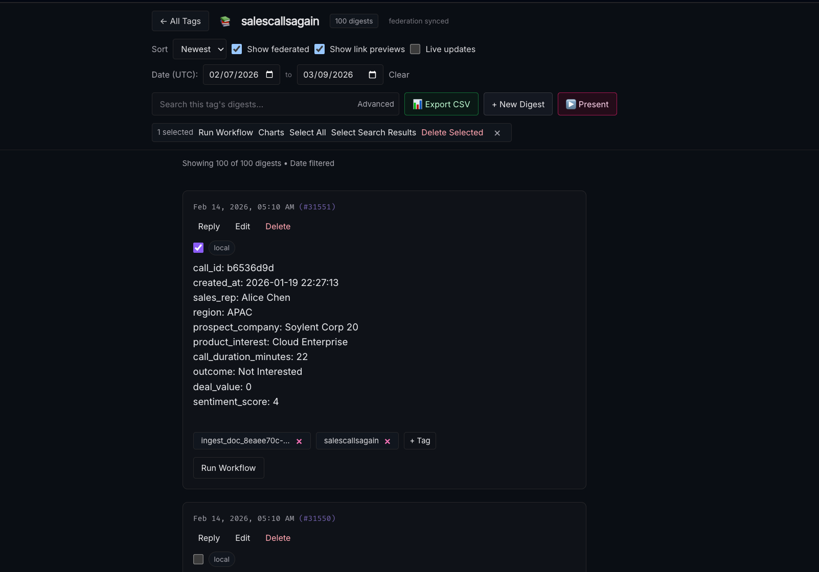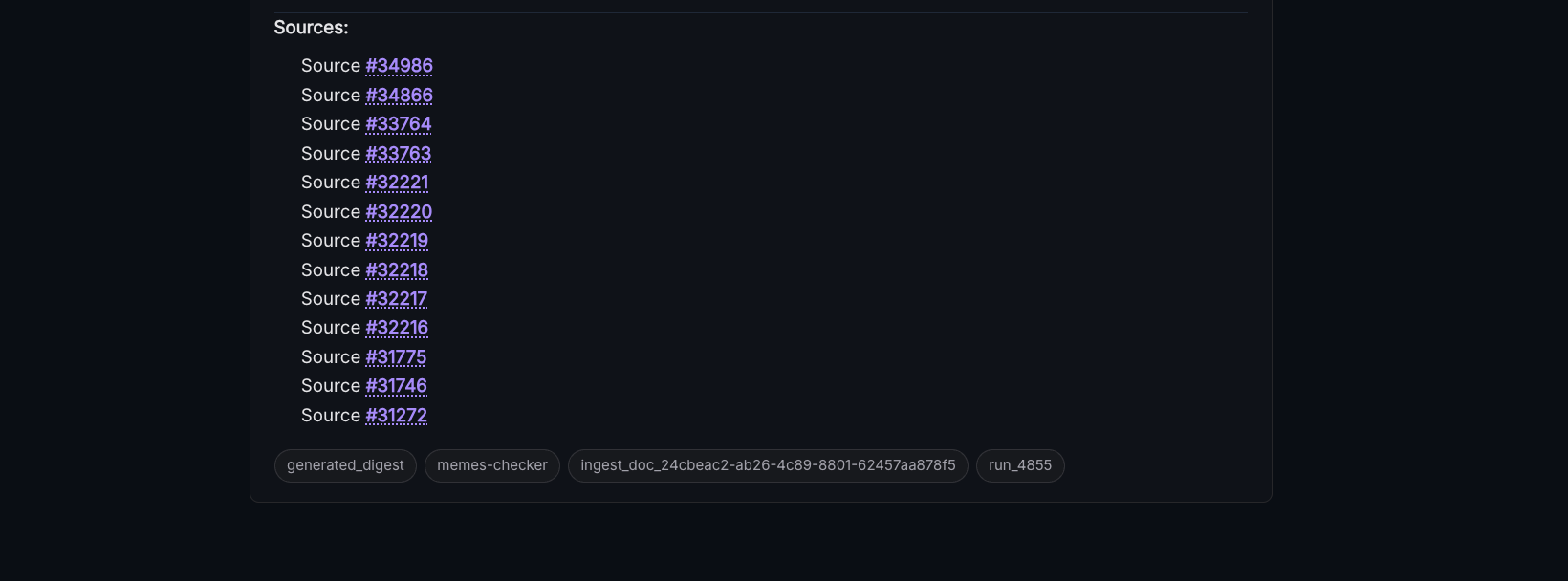 Clicking on a digest ID in the tags page or the search area will bring you to that digest and any others in your federated network that share that ID.