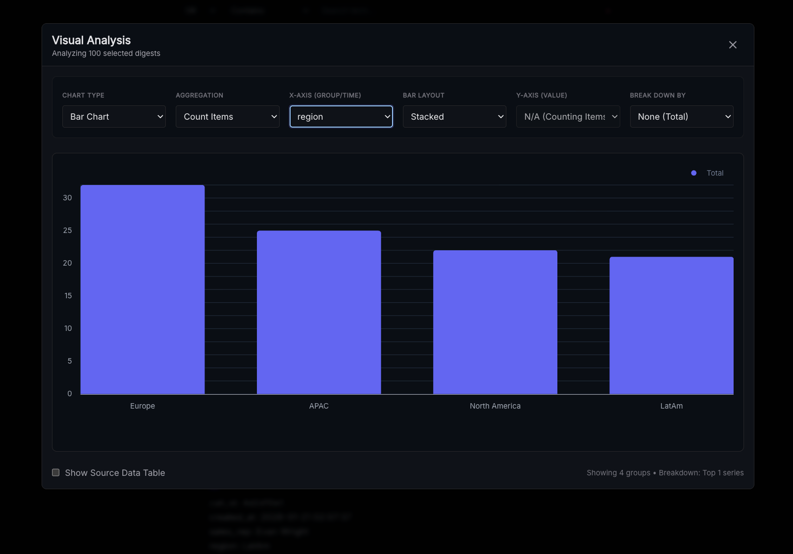 Once you have the desired digests selected you can select "charts" to create and configure a chart.