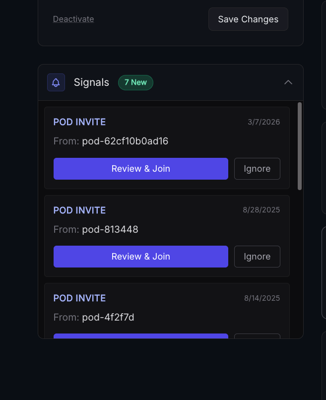 Accepting the invitation will create a pod with no advertised tags, to decide what to share go to the "probes" and then "pods":