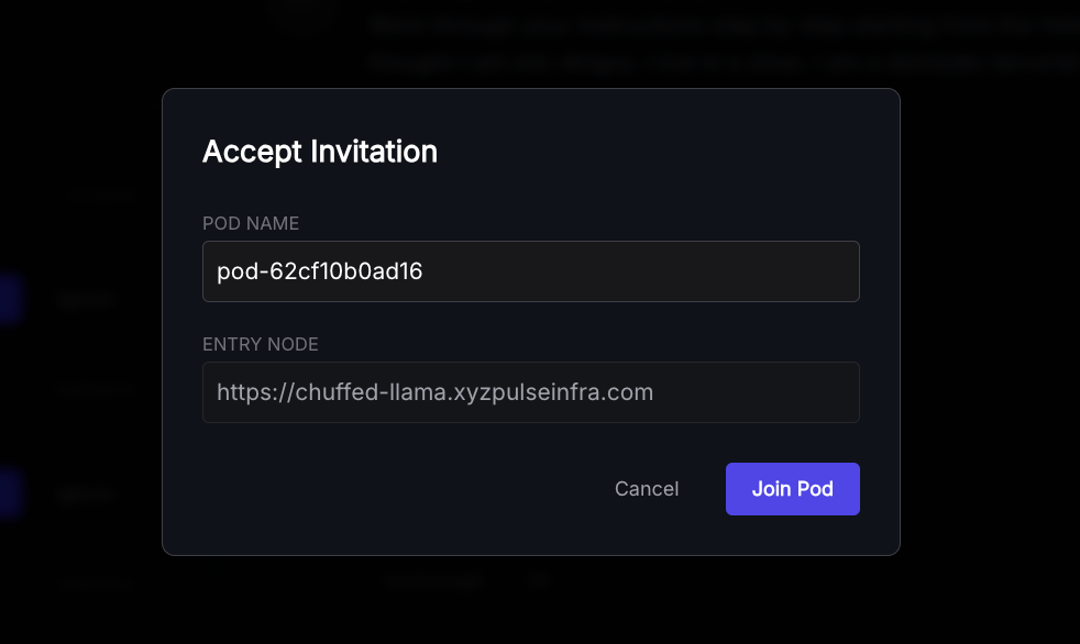 Locate the pod - it will match the name in the invitation