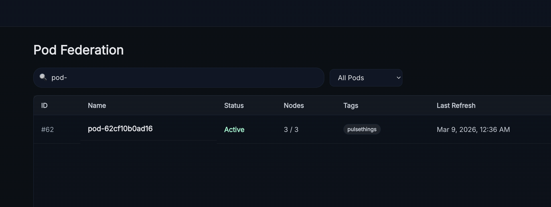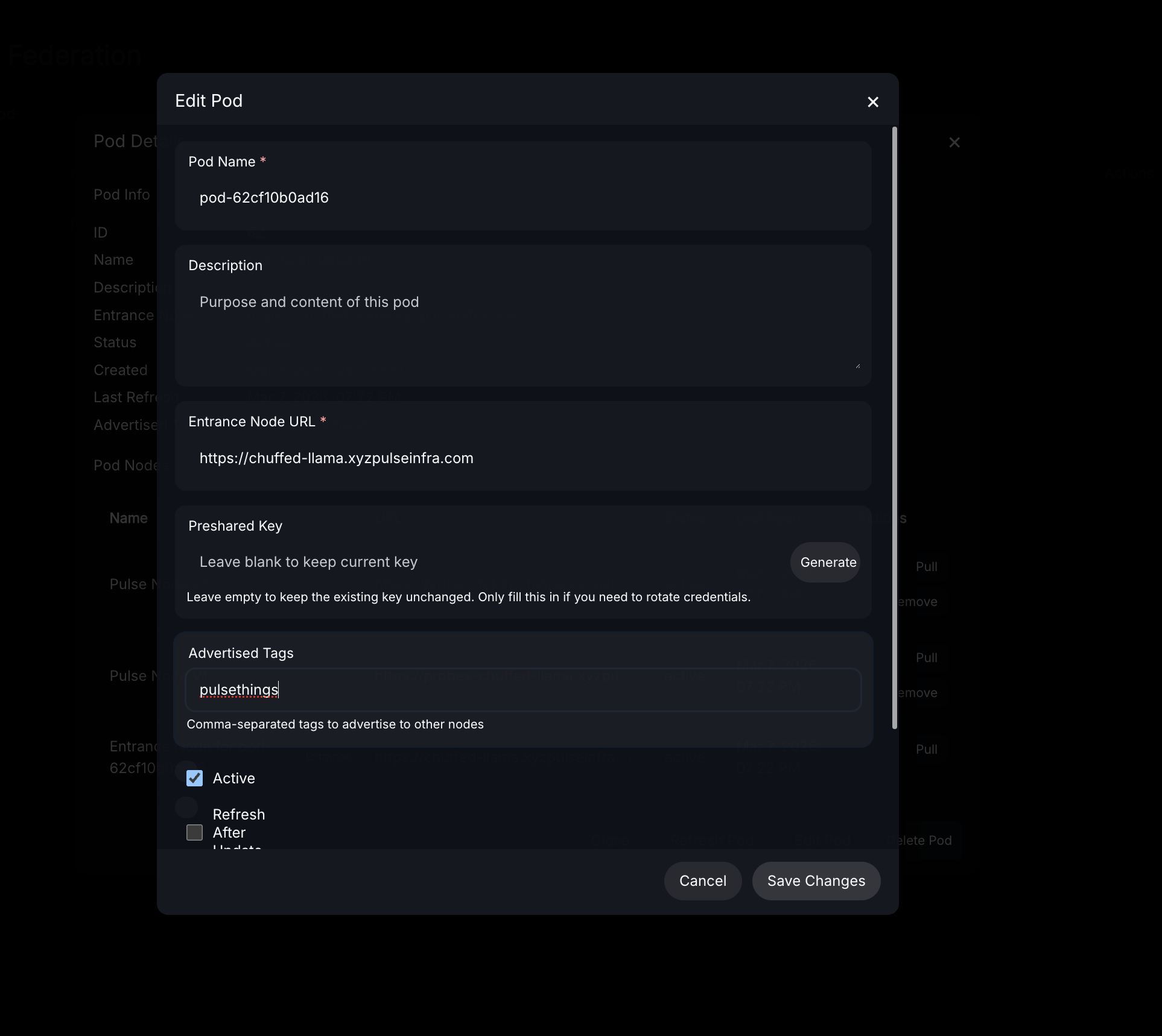 After saving changes the newly advertised tag will appear in the UI next to the pod.