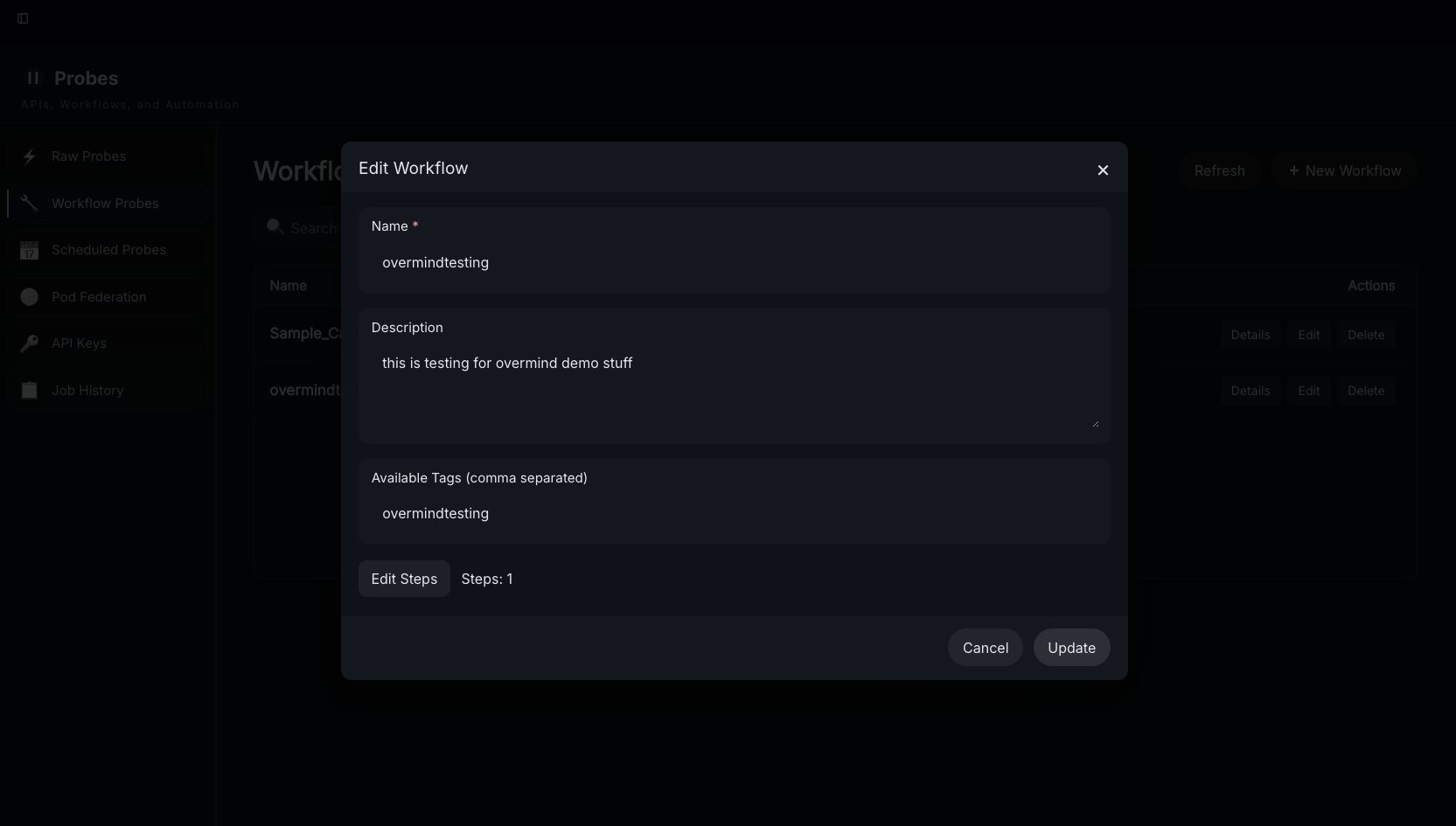 4.) Select the tags you want to assign the workflow to (in this case "overmindtesting") and press save/update - this setting supports the use of * and ? for wildcards in tag names, these will determine what tags on new incoming data will trigger the workflow